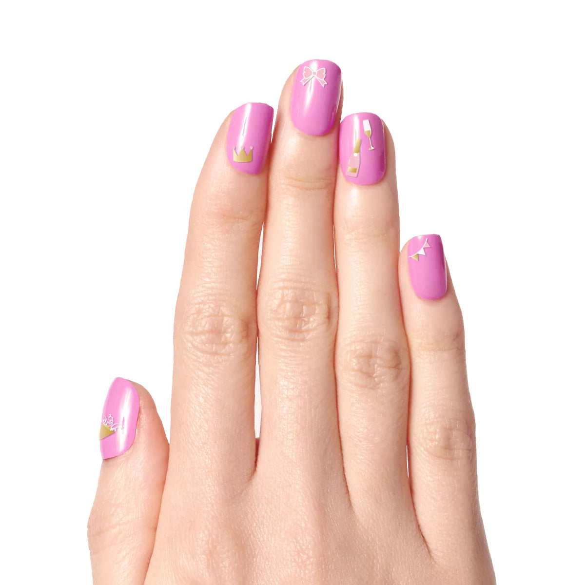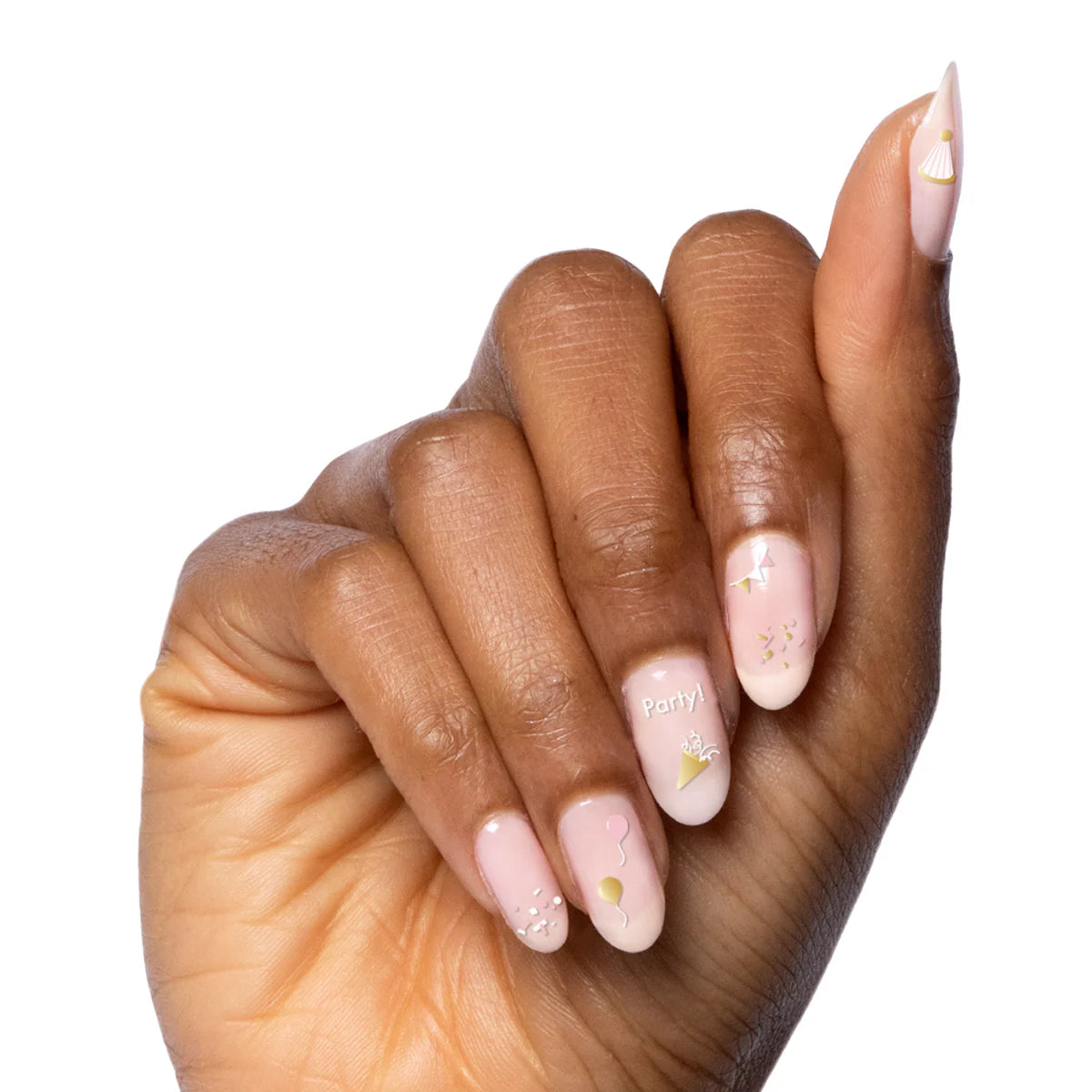 Let’s mani party! This sticker set features all the essentials for the perfect party: cake, party hats, and celebration bubbles.