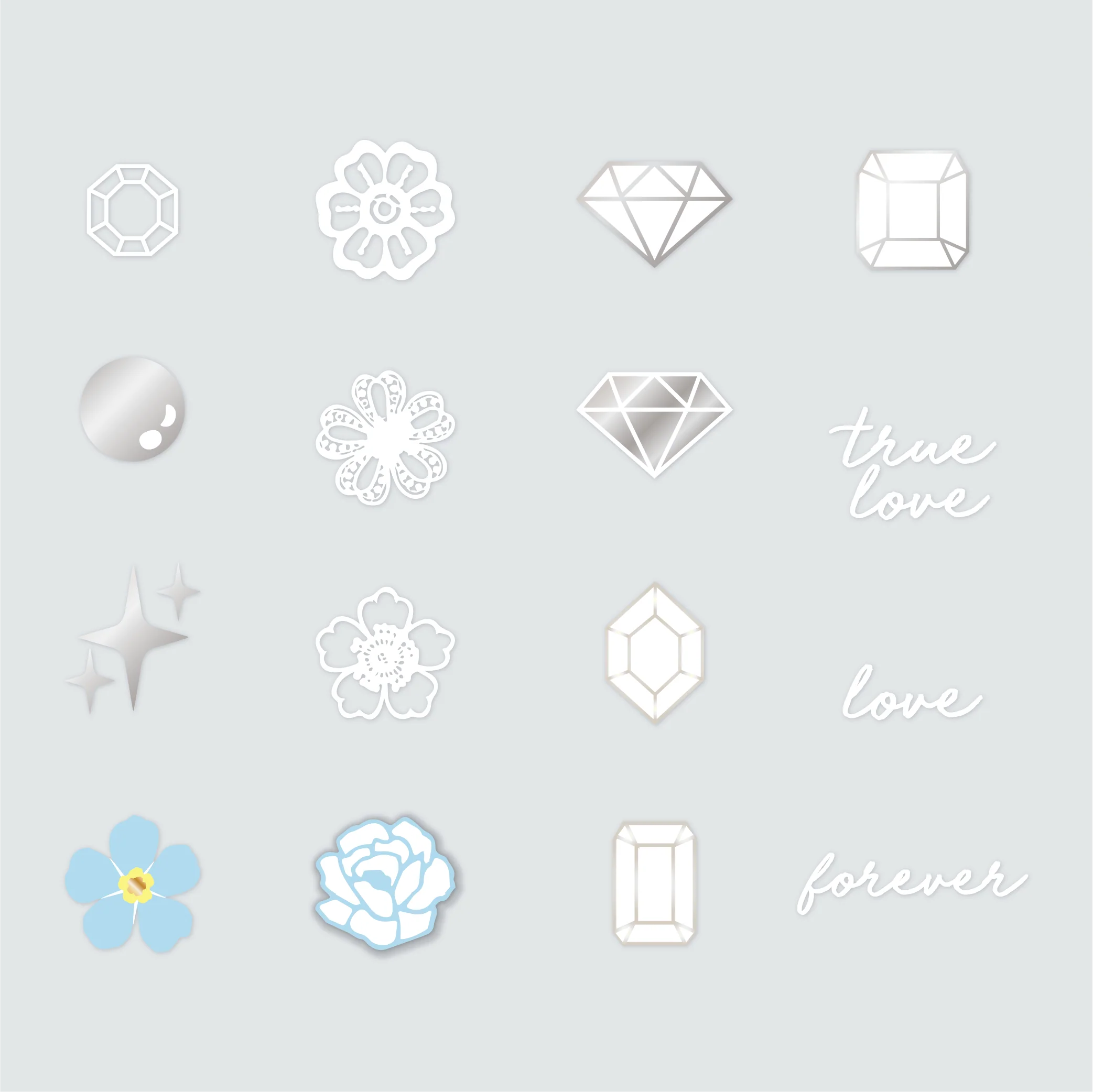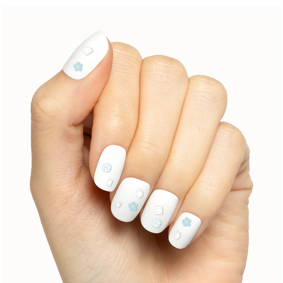 Here comes the bridal nail art stickers! This pack features a bouquet of blooms, dazzling diamonds, and sweet nothings for your wedding mani.