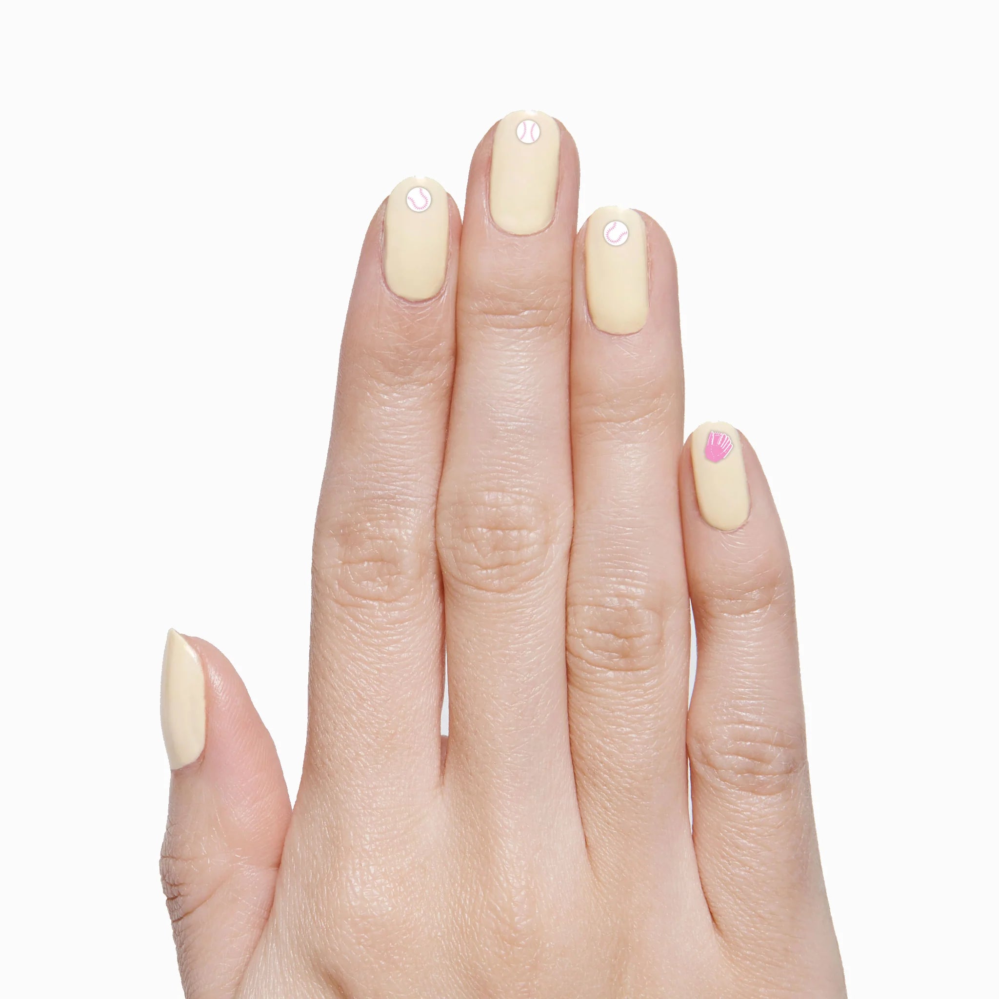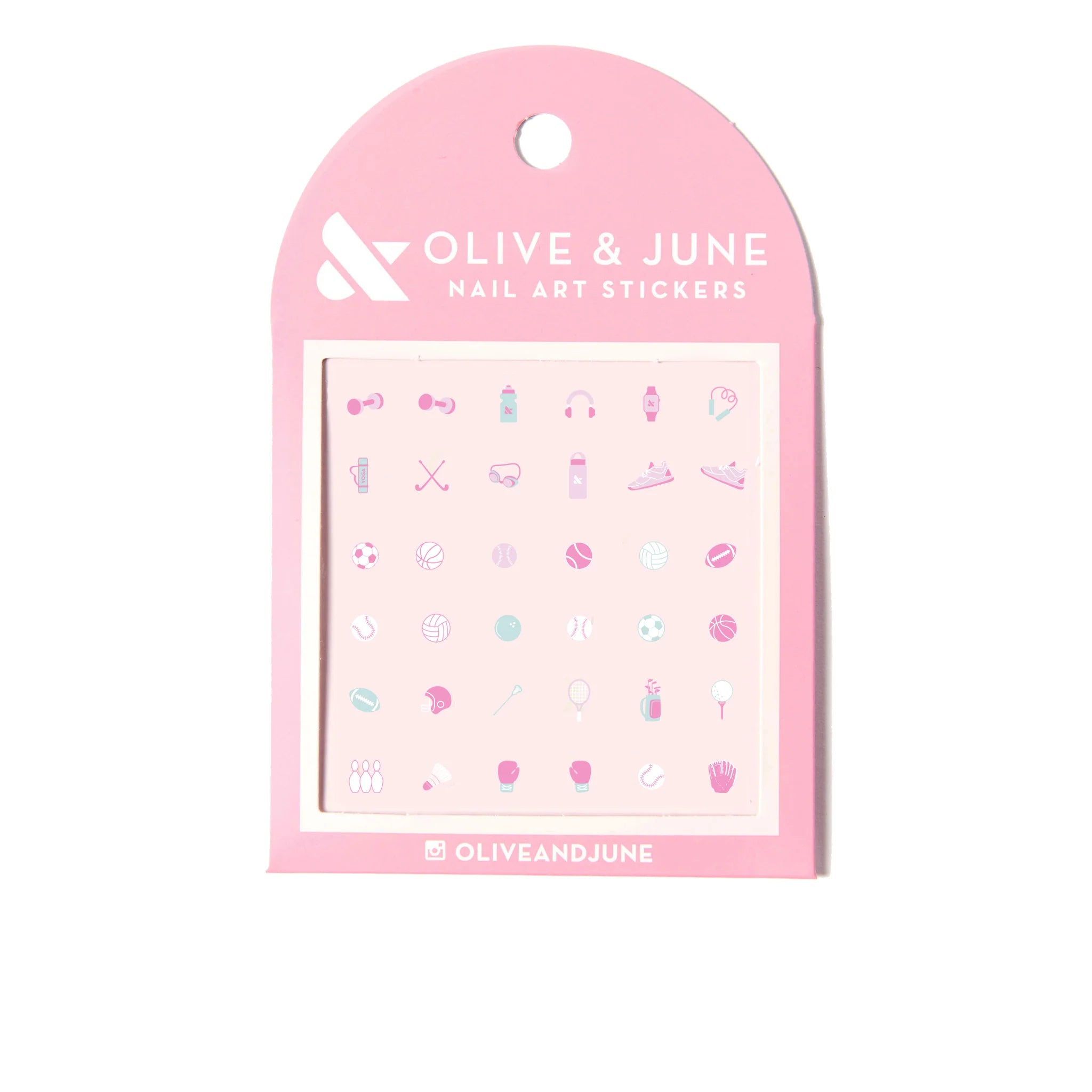 For manis that are always good sports. This sticker set features some of our favorite activities: tennis, soccer, and basketball, along with some essential sporty accessories like fresh kicks and an O&J water bottle.